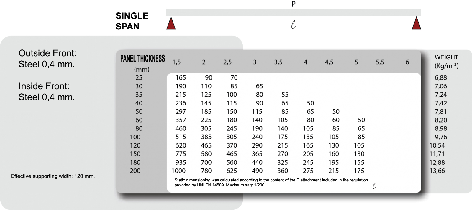 Please find below the values of the Thermal transmittance of the wall panel according to their thickness.